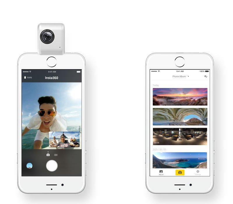 As shown above, you connect the 360 camera to the iPhone. On his Lightning plug more precisely. Then you have to download the dedicated application to decide if you want to take a 360 photo or a 360 video. And when you make your decision, you can view the result via the app naturally.